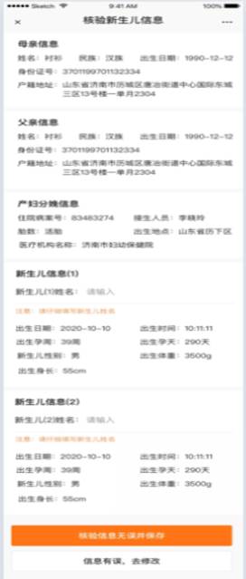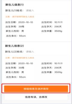 (1)信息无误居民就可以填写新生儿的姓名,在保存的时候会校验规范汉字、第三姓、再次确认填写的姓名是否无误等相关的提示。(多次提示就是为了让居民谨慎仔细的检查录入的是否正确)
