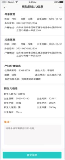 新生儿母亲人脸识别认证:确认是否本人办理(分娩记录里面的身份证号,人脸识别输入的身份证号,保持一致)。