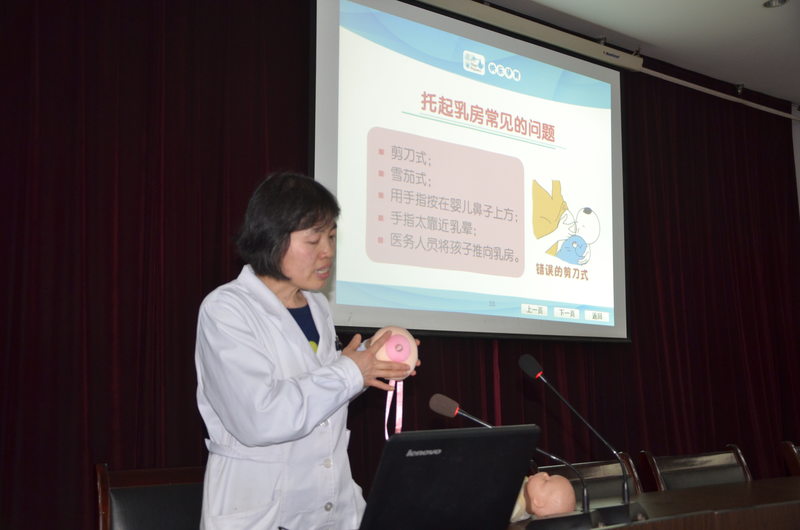 此次培训除由医院妇产科和儿科专家讲解了爱婴医院相关管理制度规范、促进母乳喂养成功10项措施、母乳喂养的好处、正确姿势、方法技巧、常见问题处理等内容,还就新生儿复苏及应注意的问题作了详细规范的培训。
