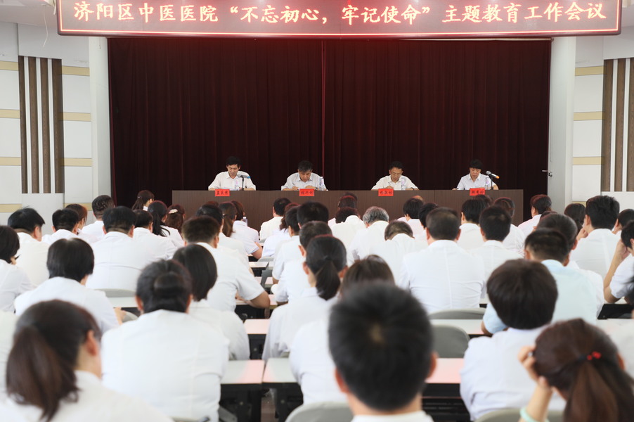 医院党总支书记孟庆传同志在讲话中强调,开展“不忘初心、牢记使命”主题教育,就是要带领全院广大党员干部坚持和落实服务好、质量好、医德好、群众满意、职工幸福的目标;就是要教育广大党员干部不忘初心,为什么出发;牢记使命,为谁出发。我们中医医院共产党人的初心就是“为群众谋福祉、为医院谋发展”。聚焦根本任务抓好落实,紧密结合实际促成实效,确保中央、省委、市委、区委和卫健局机关党委提出的主题教育要求在中医医院得到全面实现,创出优异成绩迎接新中国成立70周年!